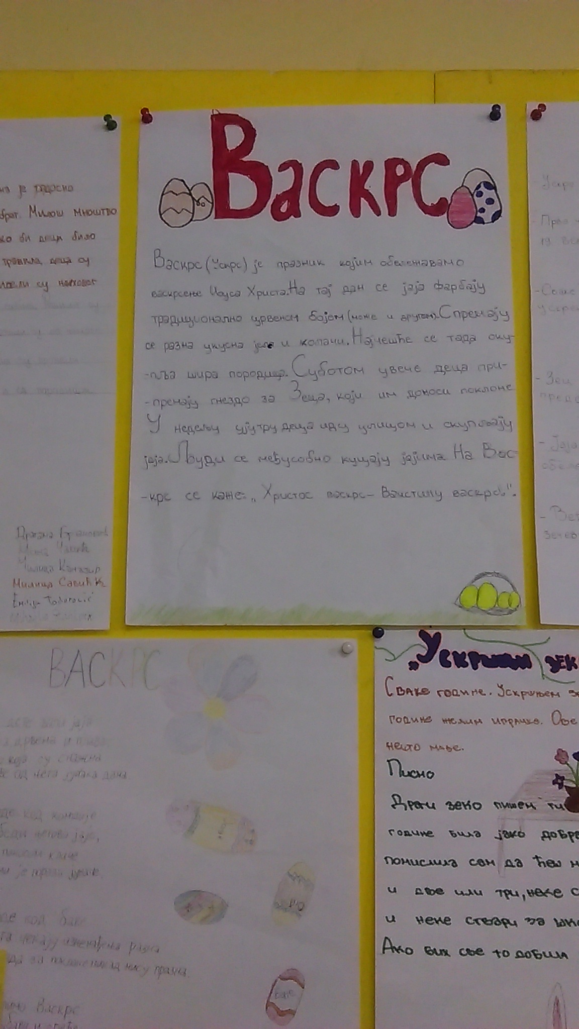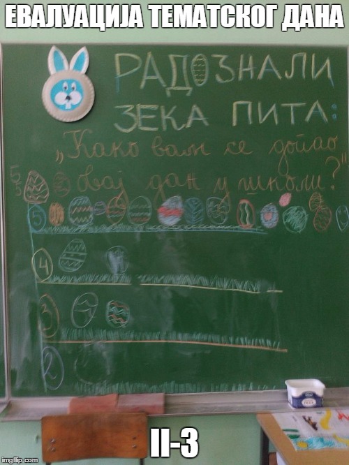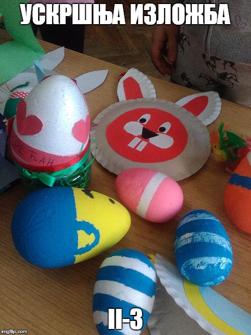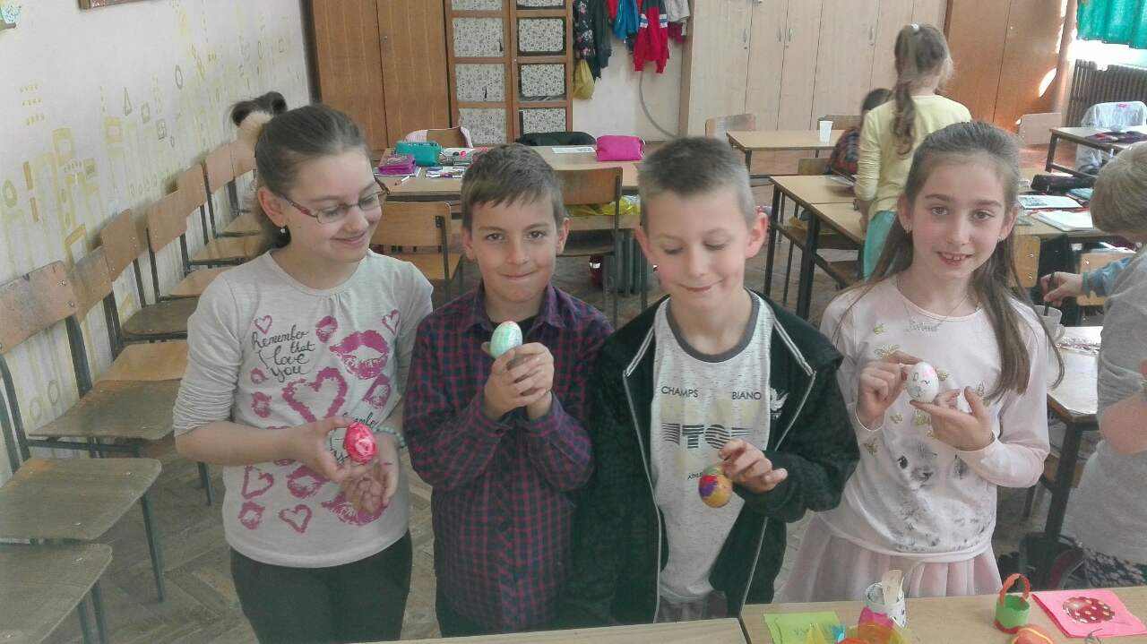 Највећи хришћански празник обележен је у нашој школи. У среду, 12.4.2017. године реализован је тематски дан – УСКРС. Сви ђаци од I до IV разреда, заједно са својим учитељицама су током целог наставног дана, часове посветили овог радосном празнику. Смењивали су се часови српског језика, математике, музичког, ликовног, физичког, …,. Учило се, певало, забављало, дружило. Весело је и забавно било, препуно различитих садржаја захваљујући креастивности и машти учитељица. Такође, овај дан је обележен и у вишим разредима од V до VIII . Ученици су били мотивисани и веома креативни, па ни резултати нису изостали. Сви смо уживали и добро се забављали!