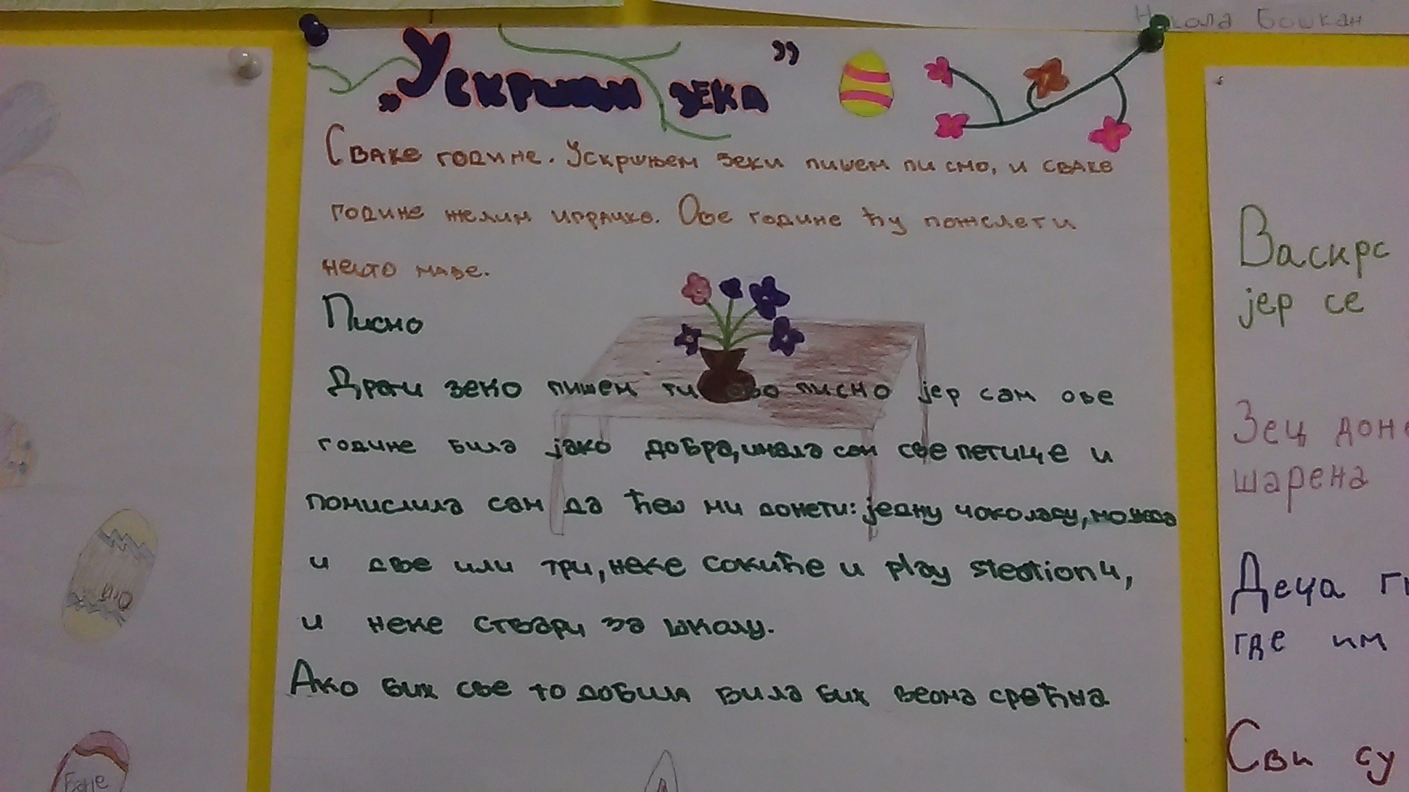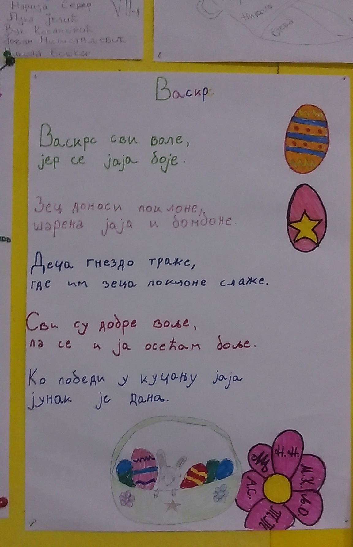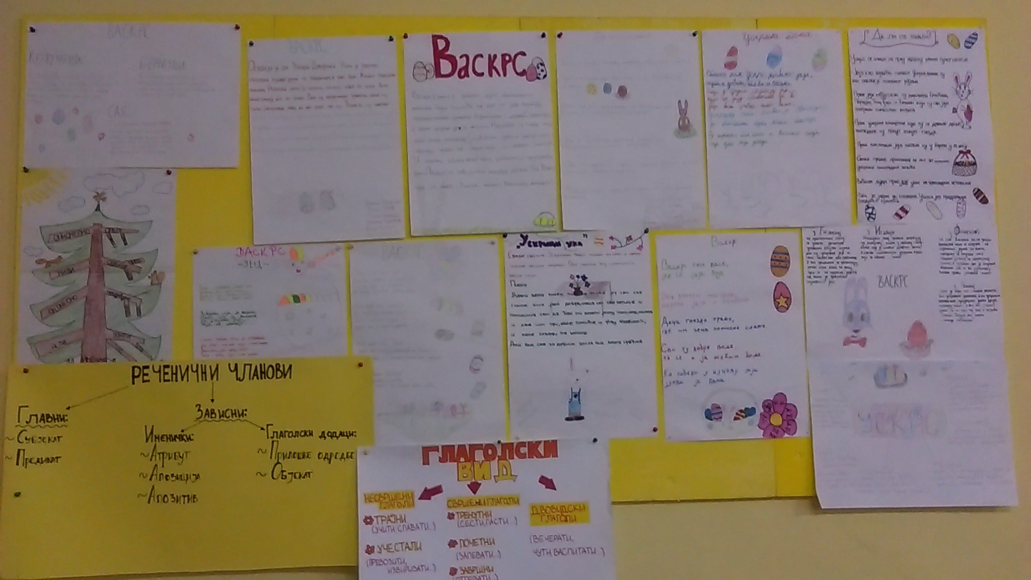Највећи хришћански празник обележен је у нашој школи. У среду, 12.4.2017. године реализован је тематски дан – УСКРС. Сви ђаци од I до IV разреда, заједно са својим учитељицама су током целог наставног дана, часове посветили овог радосном празнику. Смењивали су се часови српског језика, математике, музичког, ликовног, физичког, …,. Учило се, певало, забављало, дружило. Весело је и забавно било, препуно различитих садржаја захваљујући креастивности и машти учитељица. Такође, овај дан је обележен и у вишим разредима од V до VIII . Ученици су били мотивисани и веома креативни, па ни резултати нису изостали. Сви смо уживали и добро се забављали!